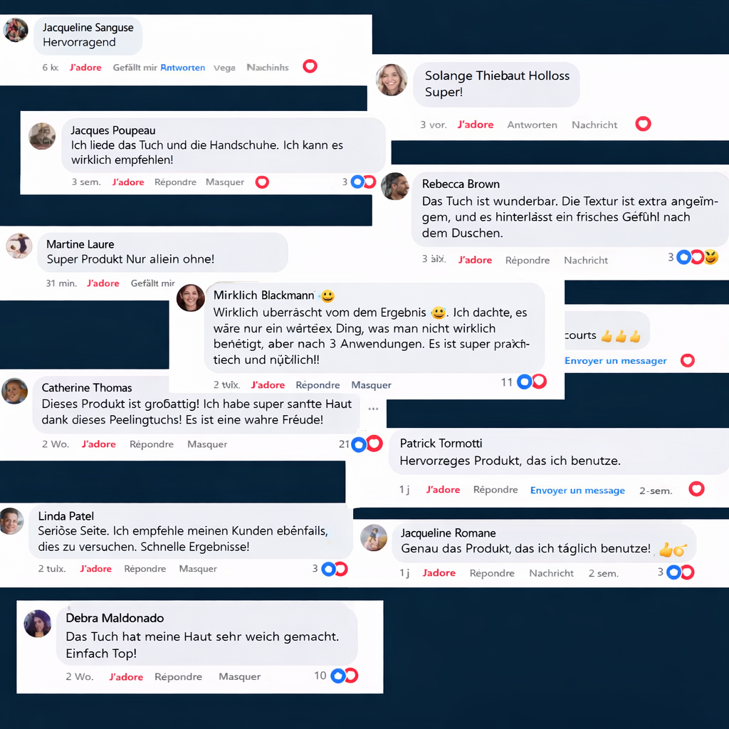 Dieses Handtuch ist einfach genial! Schon bei der ersten Anwendung fühlte sich meine Haut viel glatter und weicher an. Es exfoliert ohne zu reizen, und das lange Format ist super praktisch, um den Rücken zu erreichen. Außerdem trocknet es schnell – kein Vergleich zu Duschschwämmen, die unangenehm riechen. Ich kann nicht mehr darauf verzichten!